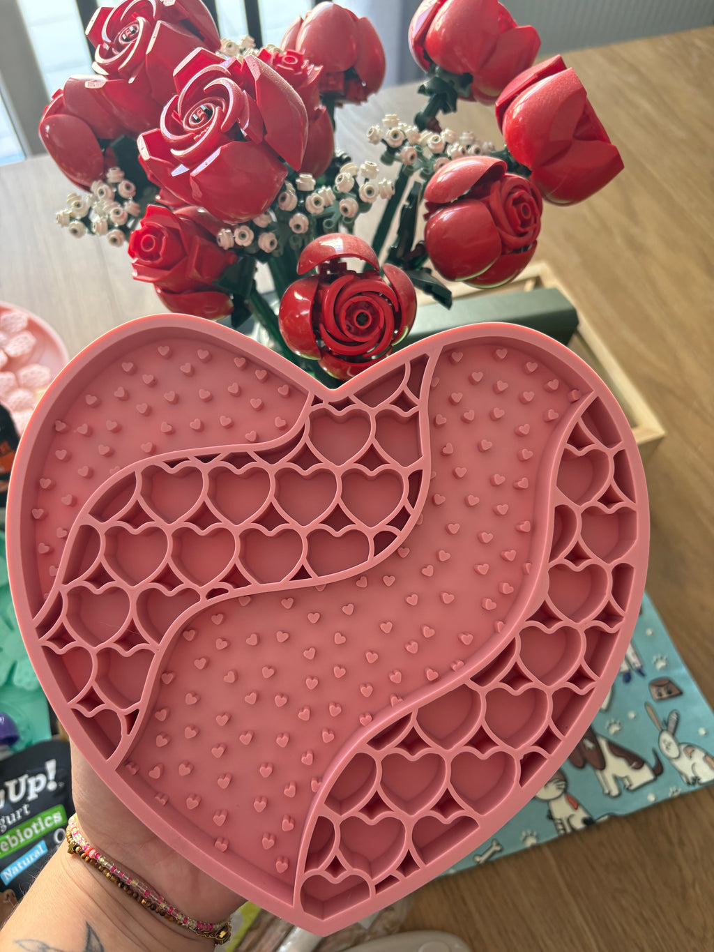 Fais plaisir à ton compagnon avec ce joli tapis de lèche en forme de cœur !